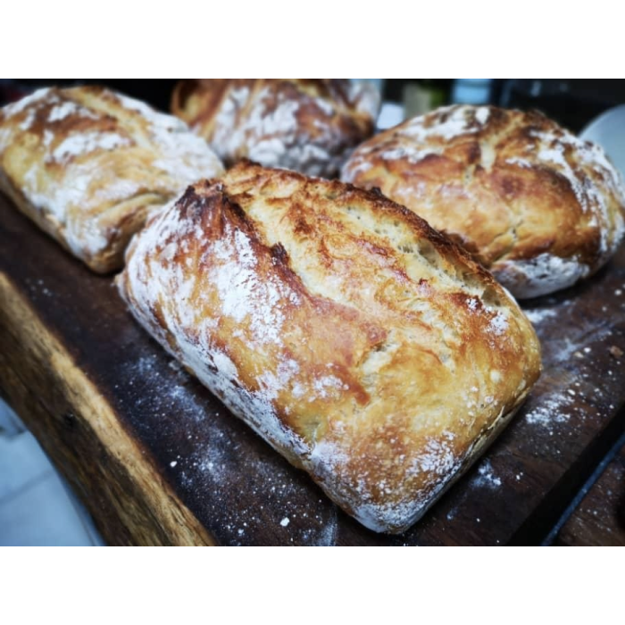 Our recipe is based on a Roman recipe and the secret to our deliciousness is in the hydration process. Made with flour, a smidge of yeast, salt, water and a lot of love. If not all eaten in one go, wrap in a tea towel and store in your bread bin or a tupperware. Can be frozen.