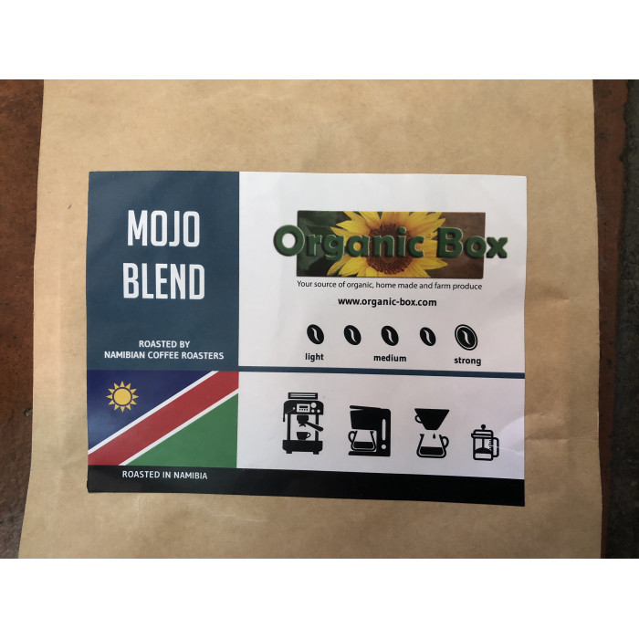 A STRONG blend full of flavour especially roasted for Organic Box! Just what you need to get your Mojo working!